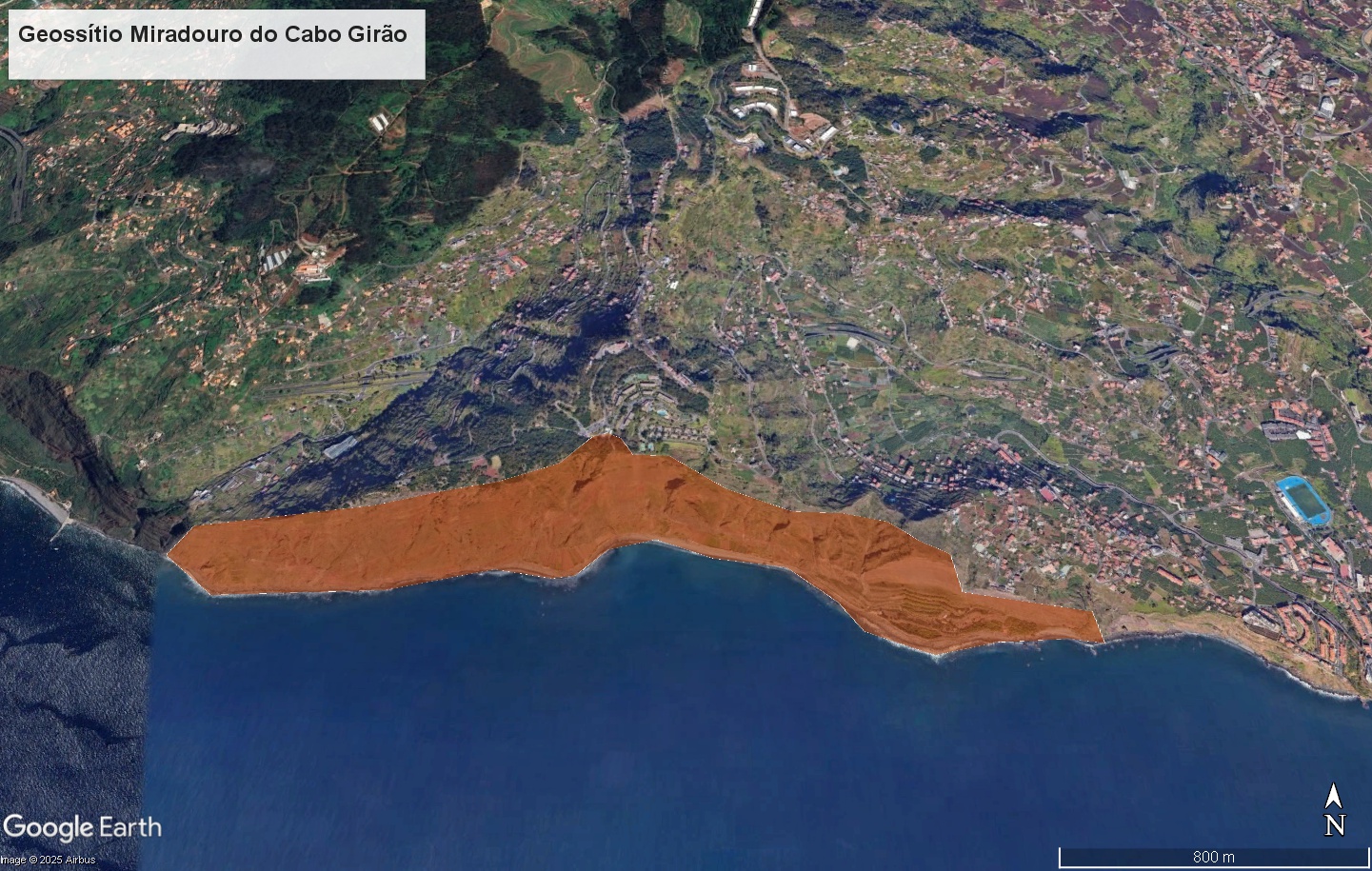 A paisagem costeira no Cabo Girão caracteriza-se por uma arriba litoral com 580 m de altura, talhada num empilhamento de depósitos piroclásticos de queda e escoadas basálticas, da Unidade da Penha d’Águia - Complexo Vulcânico Intermédio 2 (CVM2), cortados por uma densa rede de filões. No topo da mesma, afloram escoadas da unidade do Curral das Freiras - Complexo Vulcânico Intermédio 3 (CVM3).